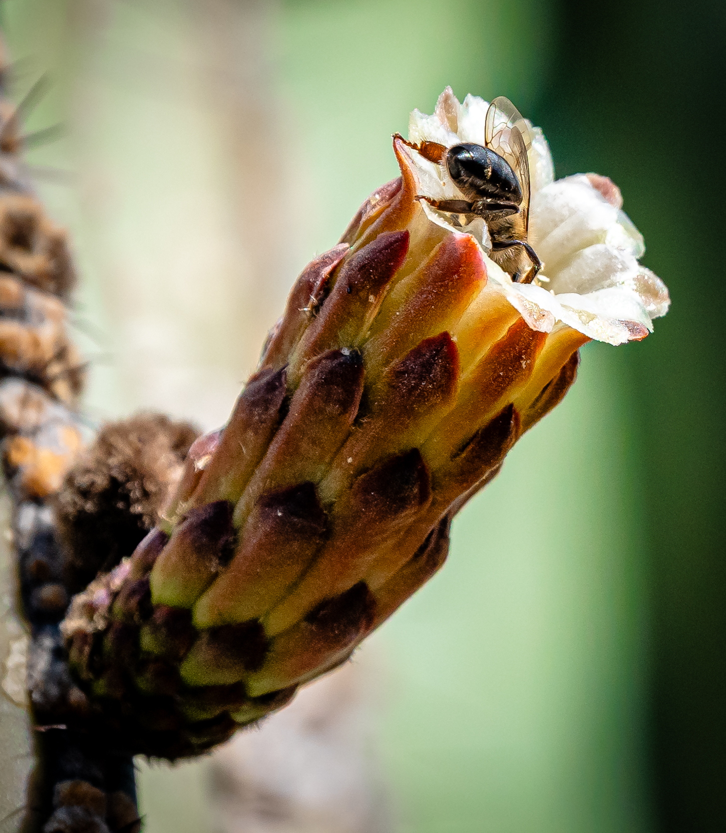 Honey bee prancing away with a sack full. (Marrakesh, Morocco)